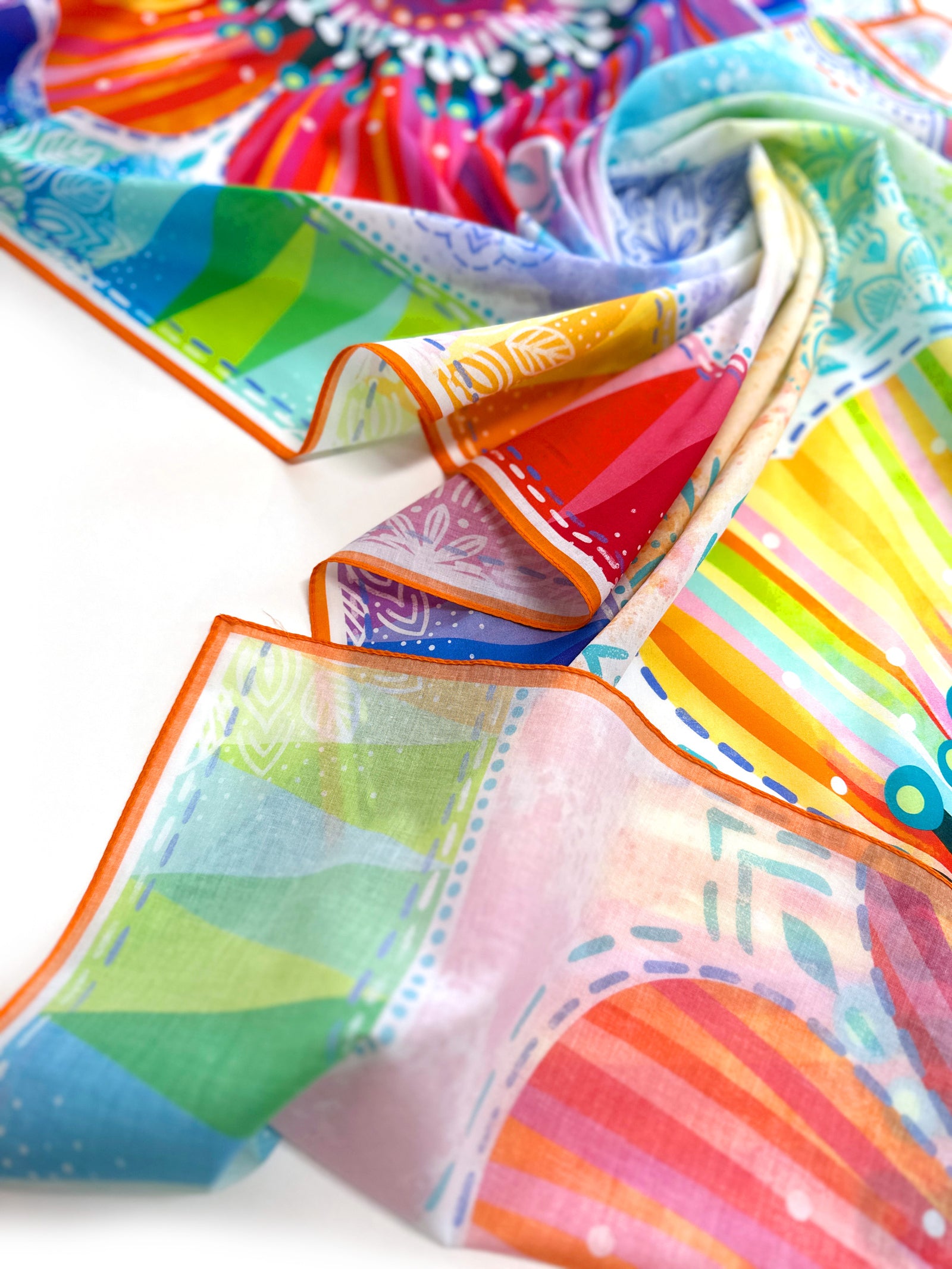 Der einseitige Druck sorgt dafĂŒr, dass die RĂŒckseite etwas pastelliger wirkt â so entsteht ein wunderschöner, sanfter Farbverlauf, der das Tuch noch lebendiger macht.