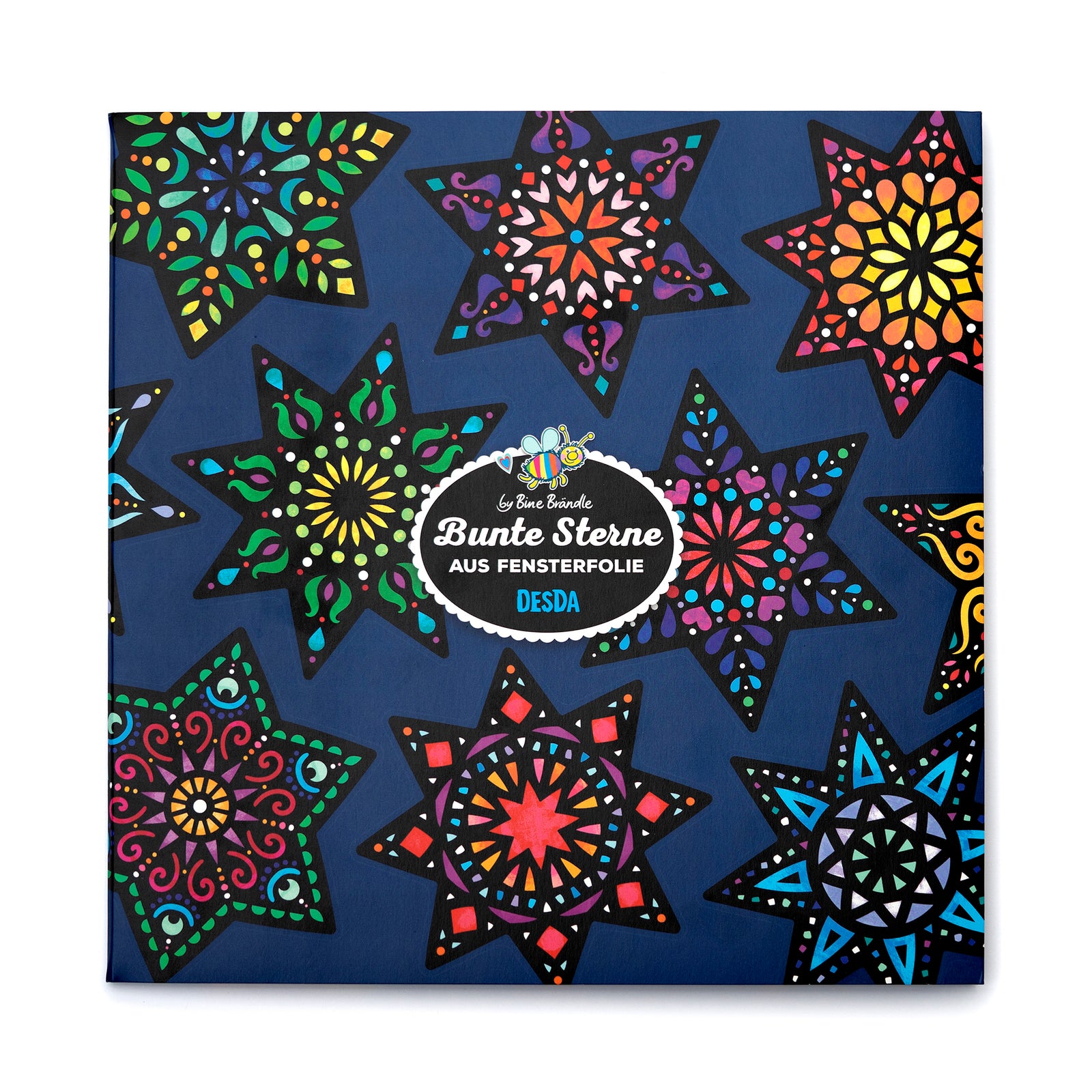 12 große, bunt gemusterte Sterne aus Fensterfolie